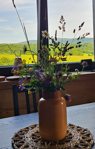 Z usytuowanego u podnóża Połoniny Wetlińskiej domu roztacza się najpiękniejszy w okolicy widok na Smerek, Hnatowe Berdo, pasmo Działu i rozległe, wonne bieszczadzkie łąki.
